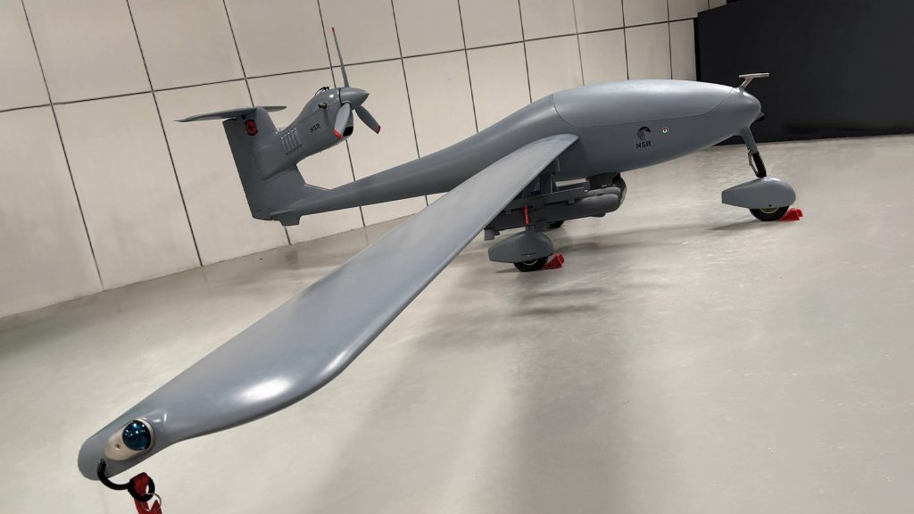 The NSR12Block-IA AQRAB is fixed-wing combat UAV is designed for high-performance precision strikes. With awing span of 12.6 meters and a length of 5.6 meters, it has a range of up to 1,100km, making it suitable for long-range missions. Operating at a cruising speed of 120 km/h, this UAV is equipped with advanced AI for automatic target detection and navigation. Its AI-driven guidance system enables real-time adjustments and precise targeting, enhancing mission efficiency and minimizing operator involvement. This UAV combines cutting-edge technology and durable construction, providing a reliable solution for tactical and strategic military operations.